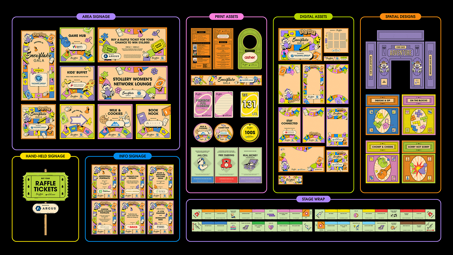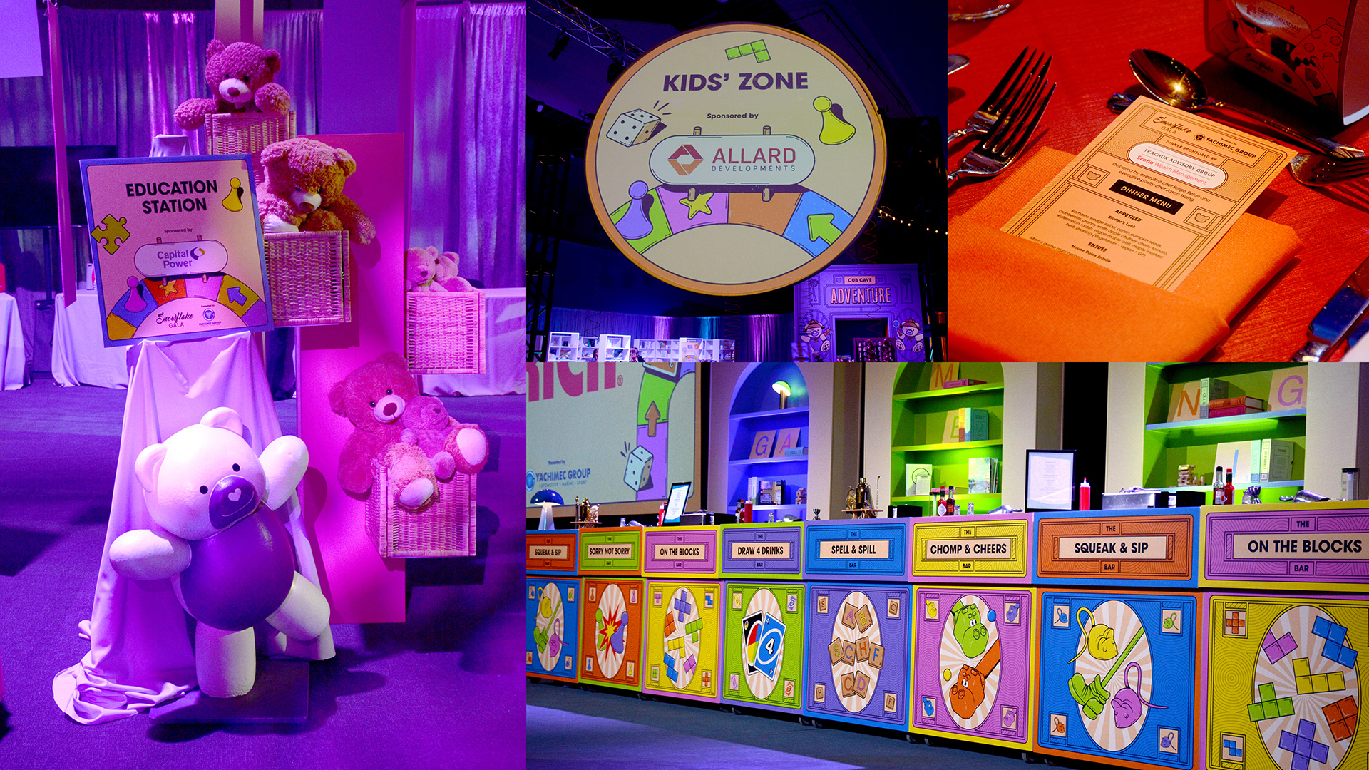 The Stollery Children’s Hospital Foundation is all about healing kids and keeping families together. So, in 2025, the Snowflake Gala—an annual fundraising event for the Stollery Children’s Hospital Foundation—was reimagined as a Family Game Night. The event was brought to life with game-themed touch points and design throughout the entire space, helping to promote a fun and inviting atmosphere for donors in attendance to open up their wallets.